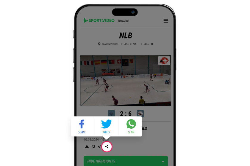 Stream your events directly on the Sport.Video channel where your highlights are also displayed. This feature allows viewers to switch between live streams and highlights effortlessly, providing a comprehensive viewing experience.
